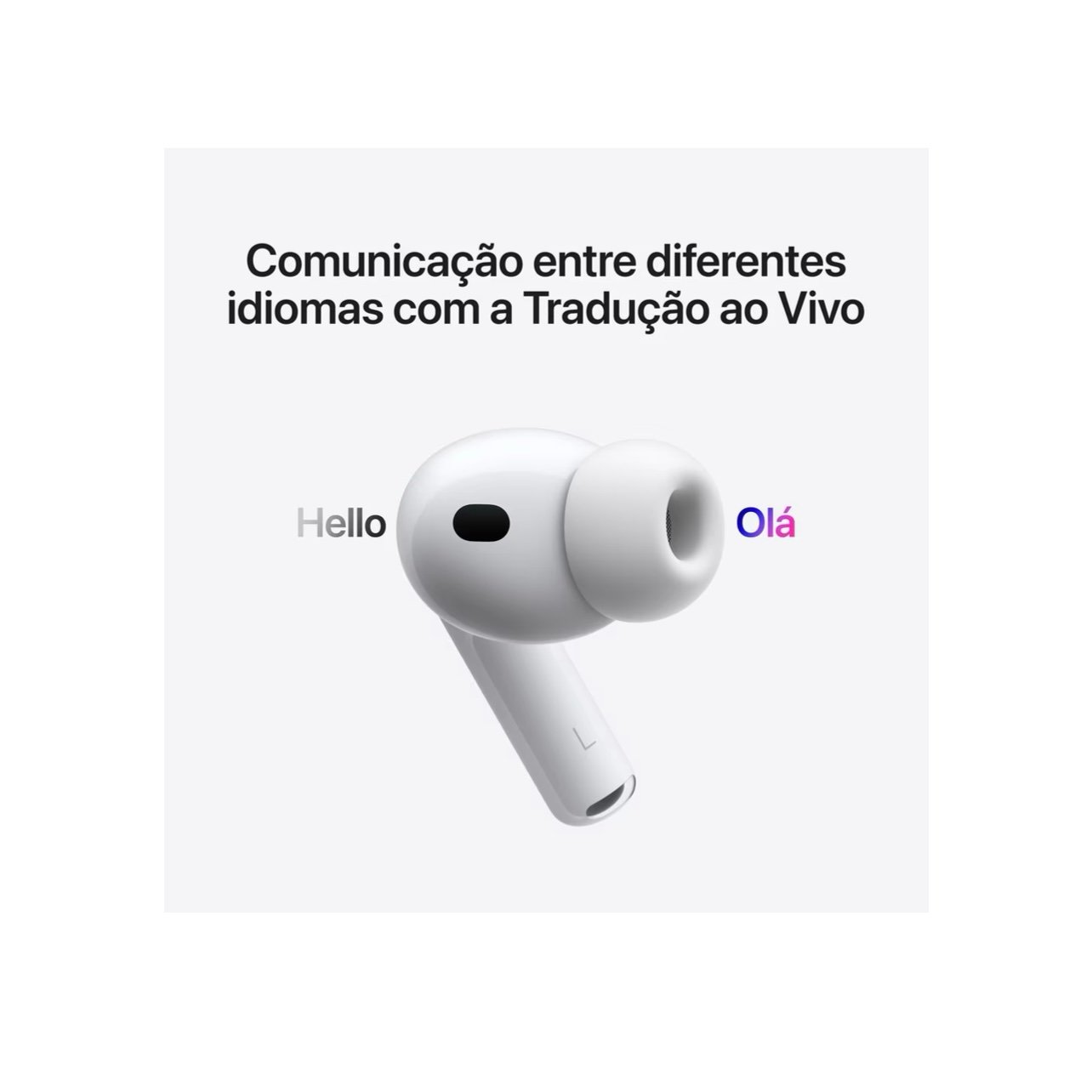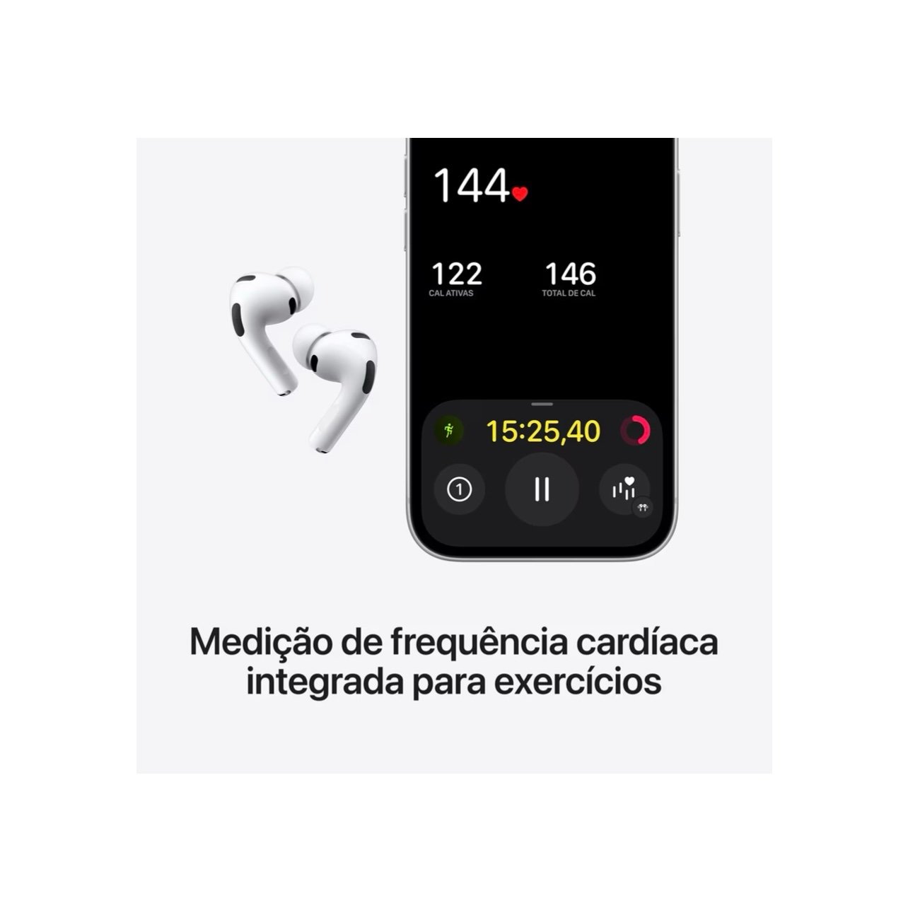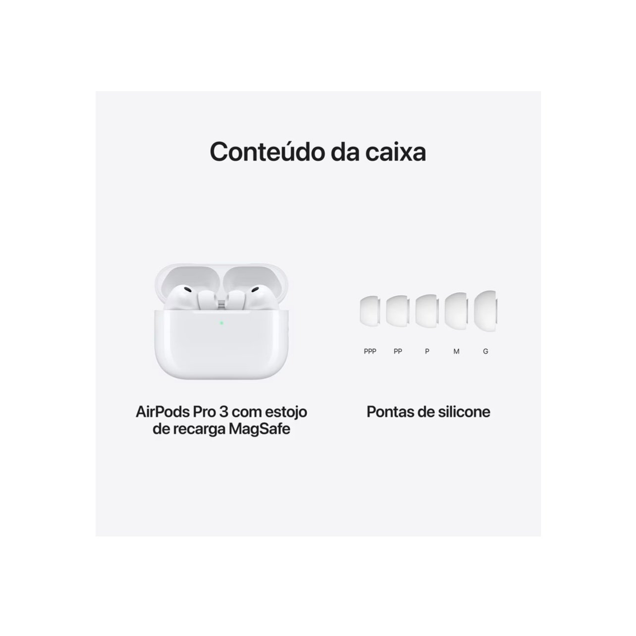 AirPods Pro 3. Cancelamento Ativo de Ruído até duas vezes melhor que o dos AirPods Pro 2. Agora com medição de frequência cardíaca, Tradução ao Vivo, maior duração da bateria e avanços em saúde auditiva. Redesenhado para um ajuste mais seguro.