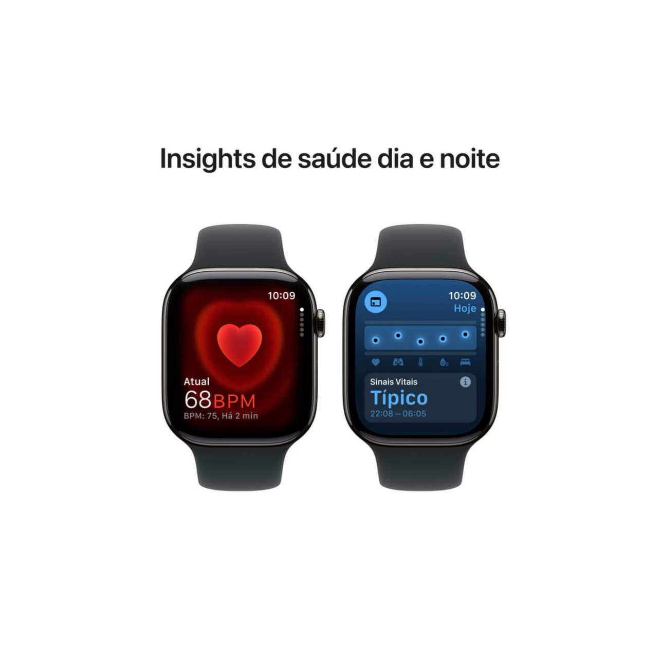 • INSIGHTS AVANÇADOS DE SAÚDE — Faça um ECG a qualquer hora5. Receba notificações de frequência cardíaca alta ou baixa e de ritmo cardíaco irregular6. Entenda melhor seu ciclo menstrual e veja estimativas de ovulações anteriores7. Consulte métricas de saúde noturnas, como frequência cardíaca e respiratória e muito mais com o app Sinais Vitais8. Acompanhe seu sono.