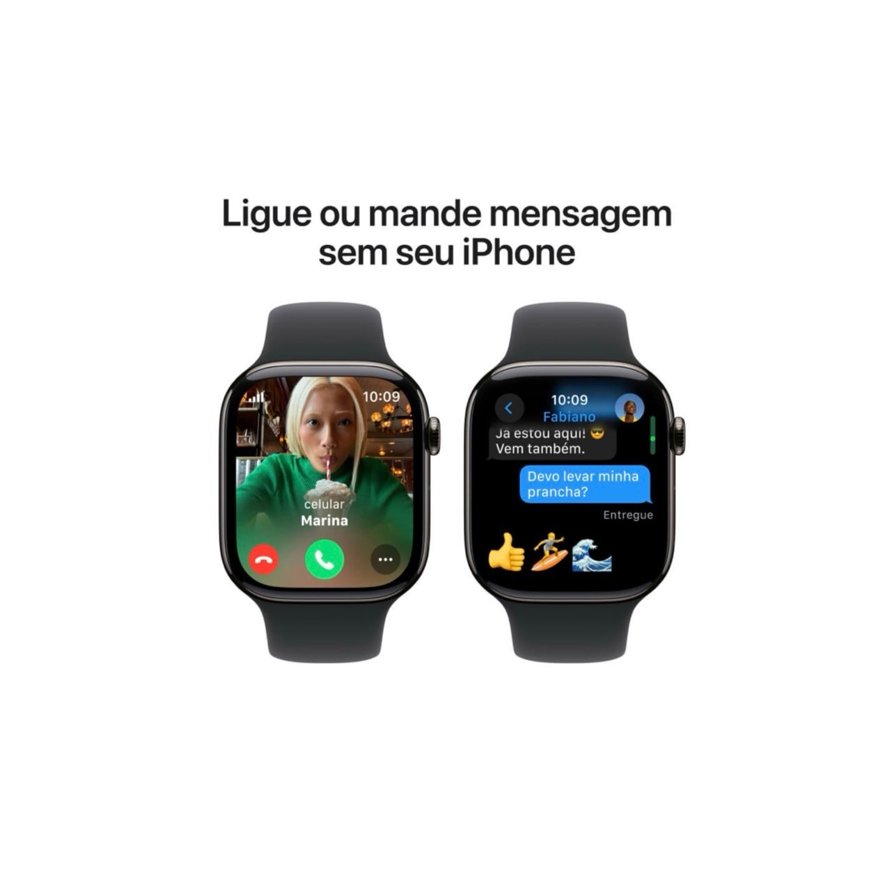 • CONEXÃO CELULAR — Envie mensagens, atenda ligações, ouça músicas e podcasts, use a Siri e veja suas notificações onde estiver. O Apple Watch Series 10 (GPS) usa seu iPhone ou Wi-Fi para manter você sempre em conexão.